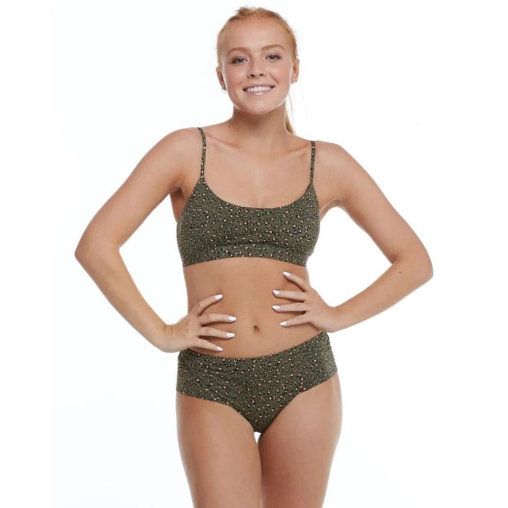 We’re bringing back the eighties with this exotic cheetah print collection. Let your wild side shine in the Aro top, a guaranteed hit for Bralette fans, with its spaghetti straps and a wide bottom band. This piece includes removable soft cups for a touch of optional support.
