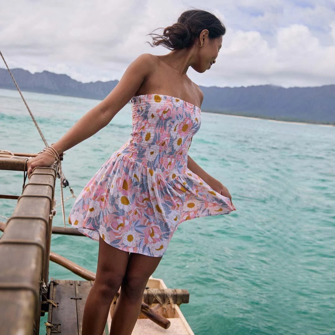 The Body Glove Women’s Wayata Ona Cover-up Dress is a stylish and versatile piece that transitions seamlessly from the beach to the boardwalk. Designed as a bandeau mini dress, it offers a flattering and feminine silhouette.